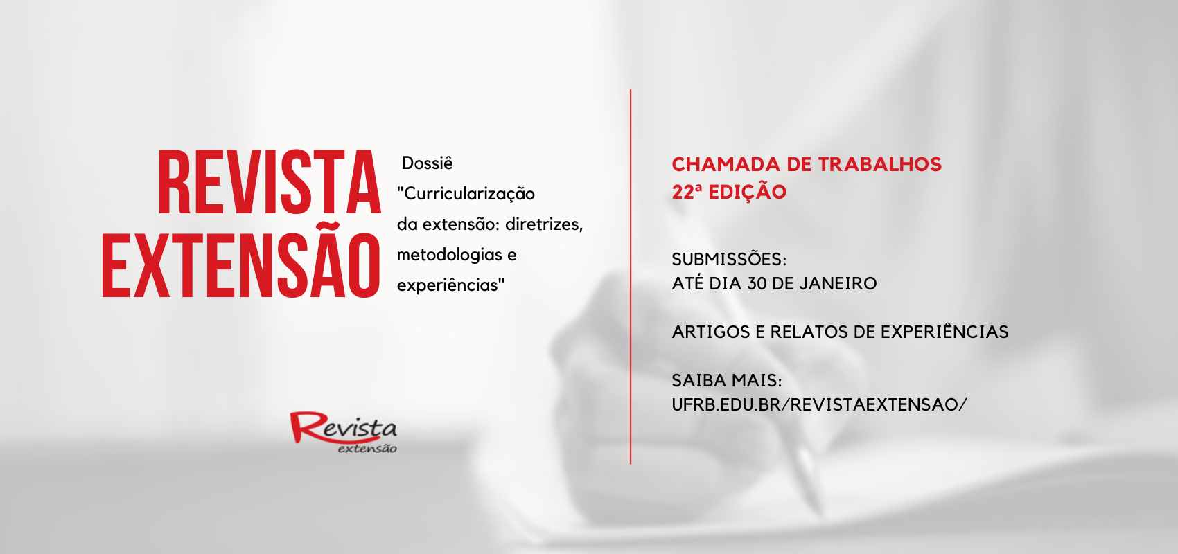 A Pró-Reitoria de Extensão da Universidade Federal do Recôncavo da Bahia recebe artigos e relatos de experiências para publicação na Revista Extensão até o dia 30 de janeiro. A...