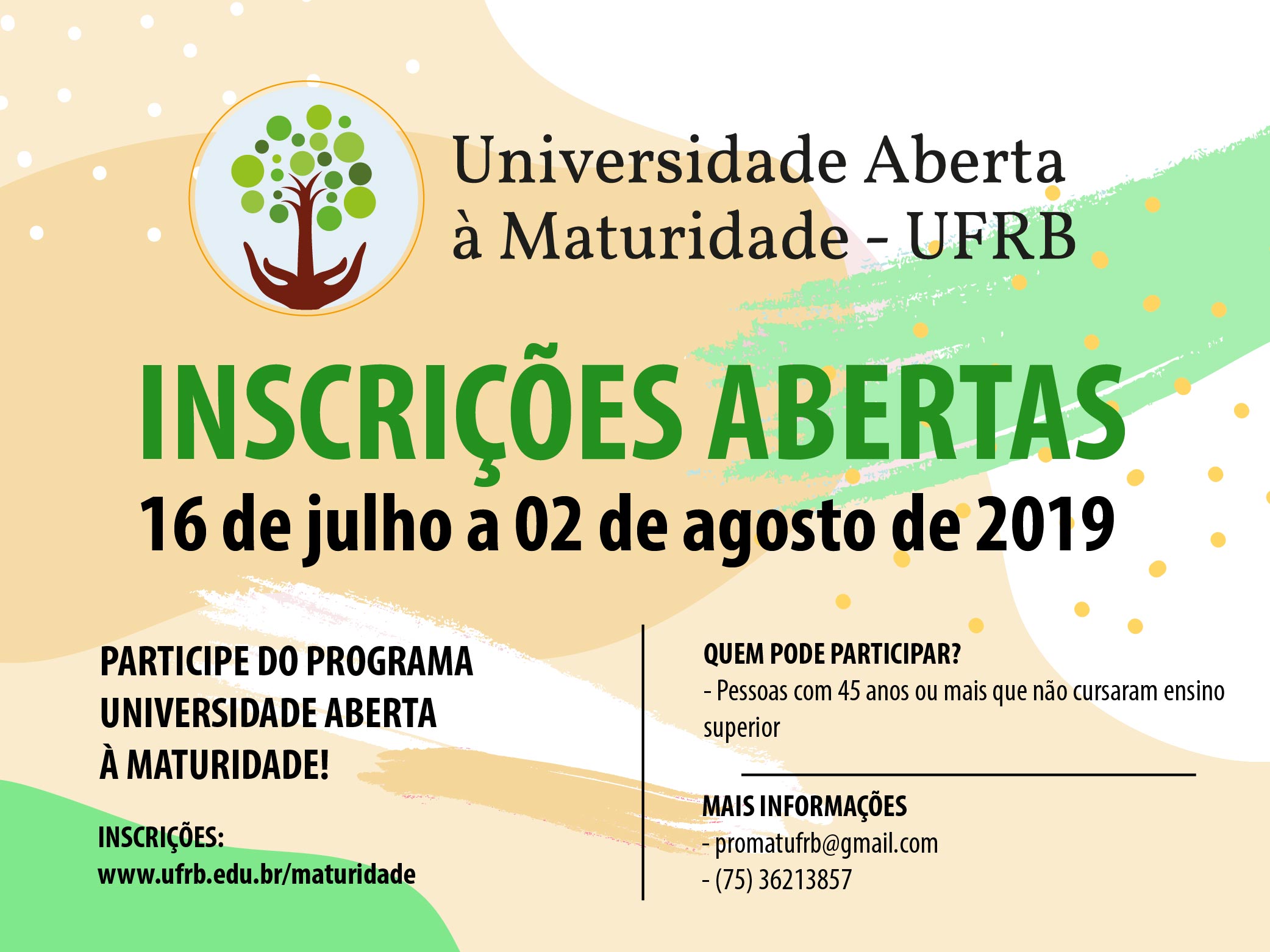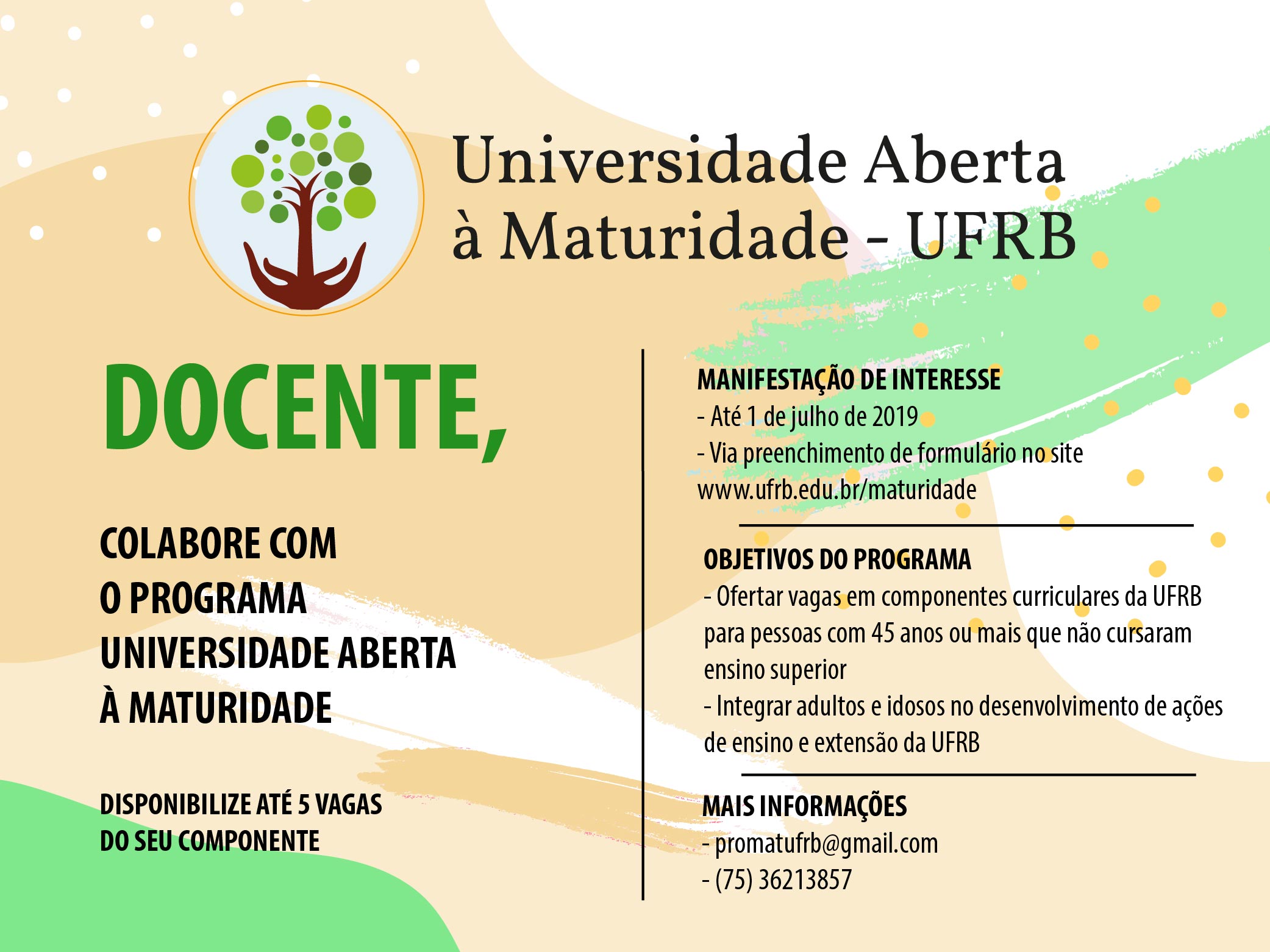 A Pró-Reitoria de Extensão da Universidade Federal do Recôncavo da Bahia torna público o Edital Nº 07/2019– Oferta de vagas do Programa Universidade Aberta à Maturidade...