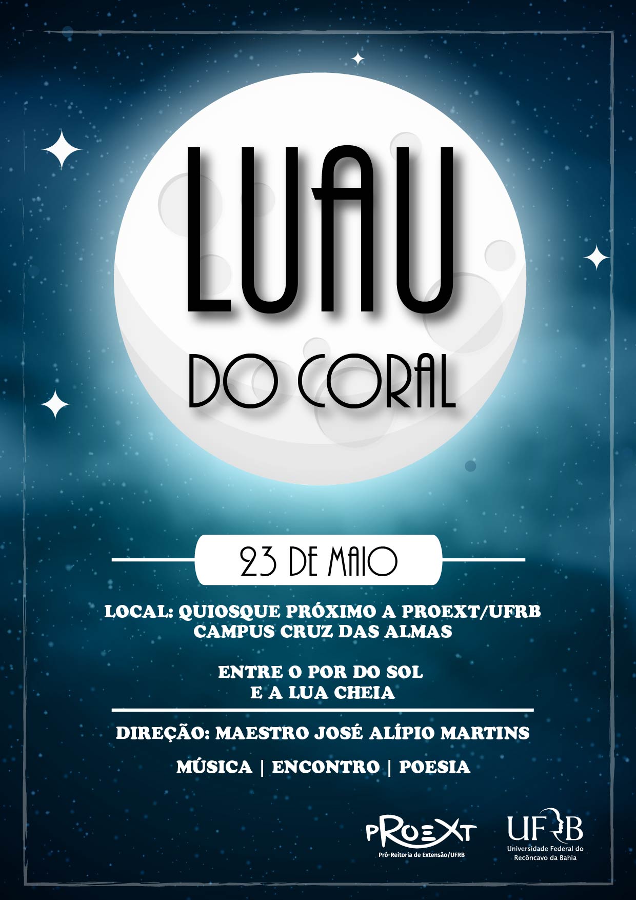 O Coral da UFRB vai promover mais um encontro com muita música e poesia no campus universitário de Cruz das Almas. O Luau do Coral está marcado para o dia 23 de maio, às 18h, no...