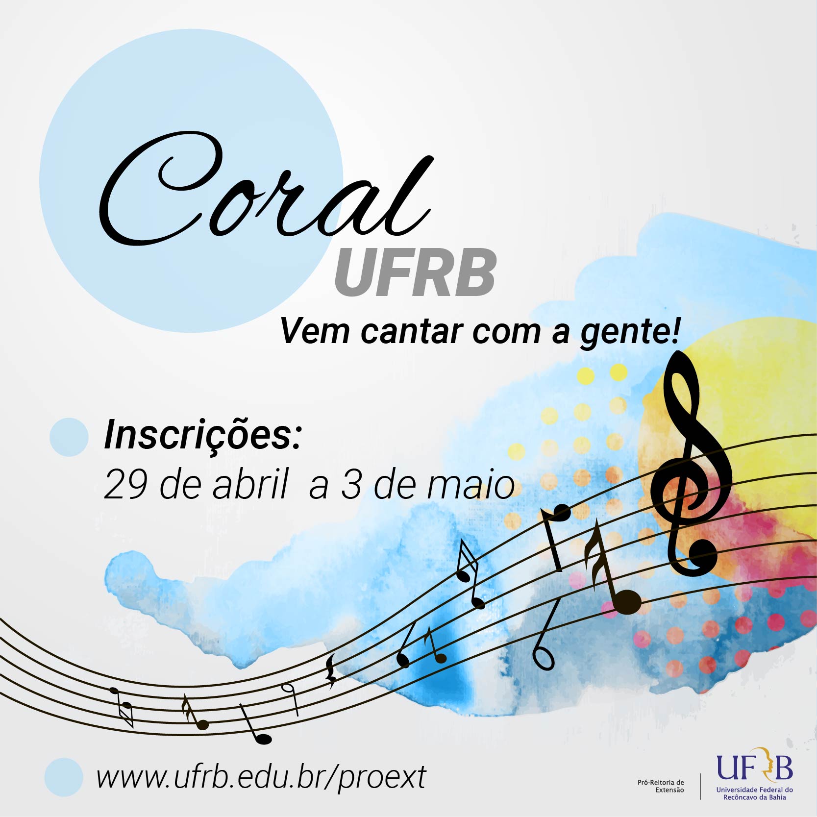 Formado por servidores, alunos e comunidade externa, o CORAL UFRB há mais de dez anos vem realizando um espaço de acolhimento, amizade e muita música! Composto por um coro a...