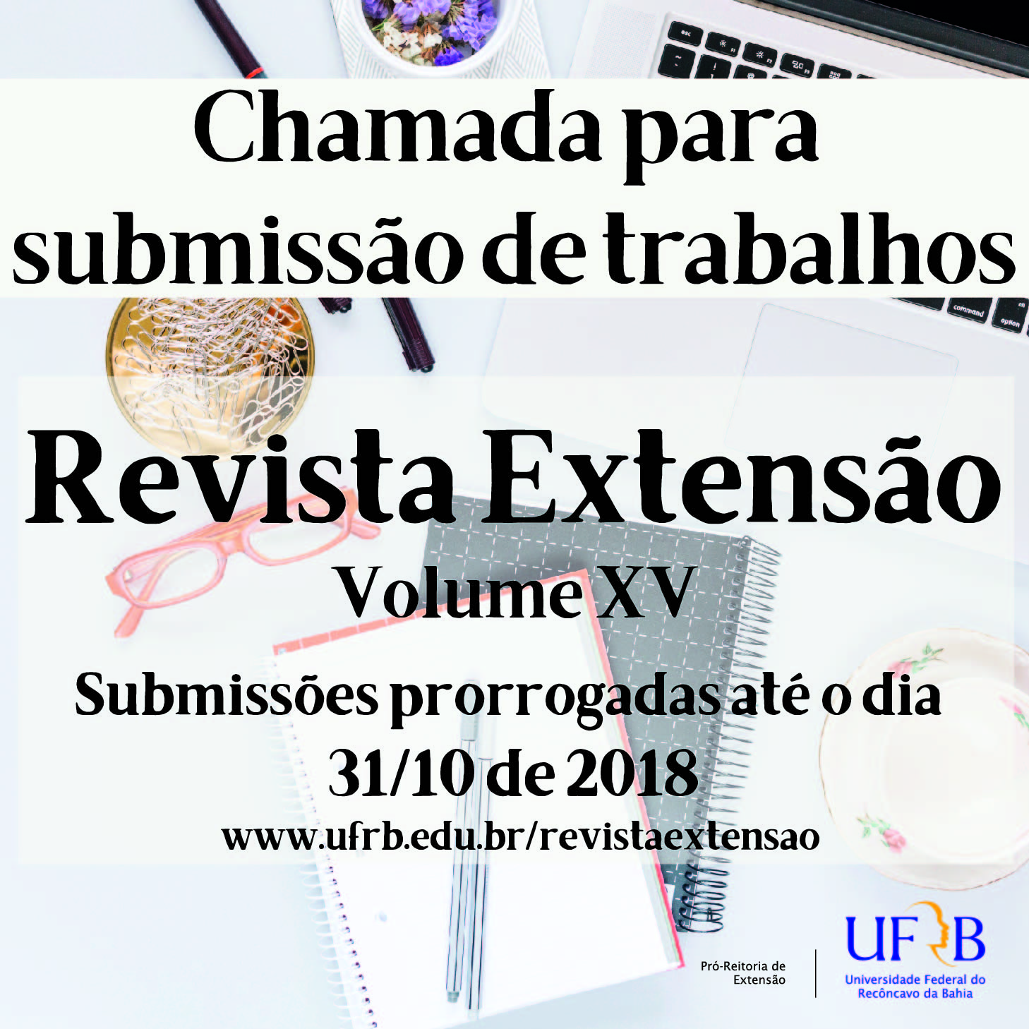 A Pró-Reitoria de Extensão da Universidade Federal do Recôncavo da Bahia prorroga chamada de trabalhos para o 15º volume da Revista Extensão nas categorias artigo científico, resenha...