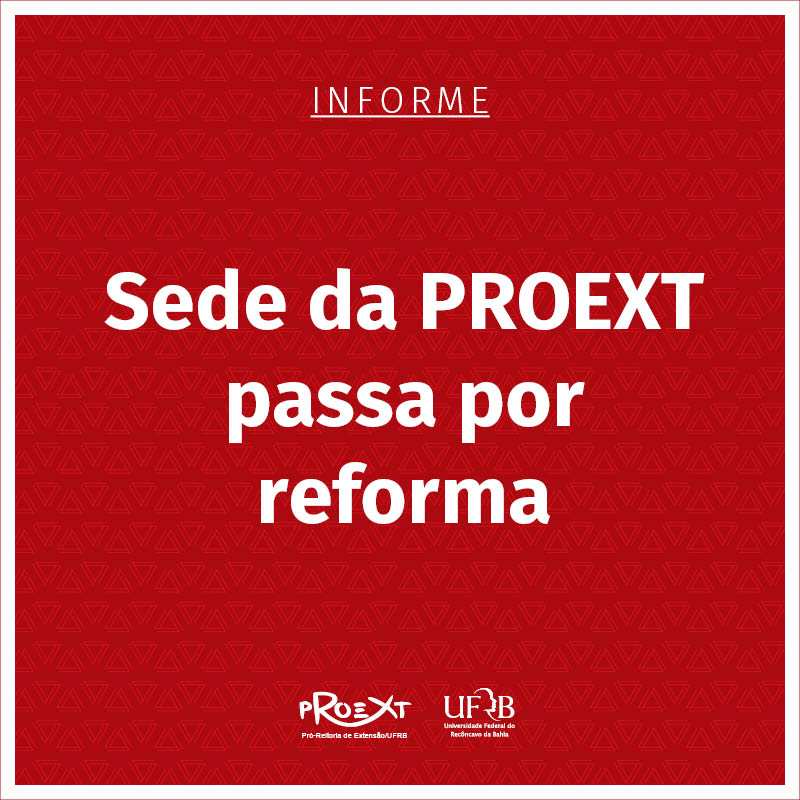 A sede da Pró-Reitoria de Extensão (PROEXT) da Universidade Federal do Recôncavo da Bahia (UFRB) passará por reforma e pintura nos próximos dias. De acordo com a Pró-Reitoria de...