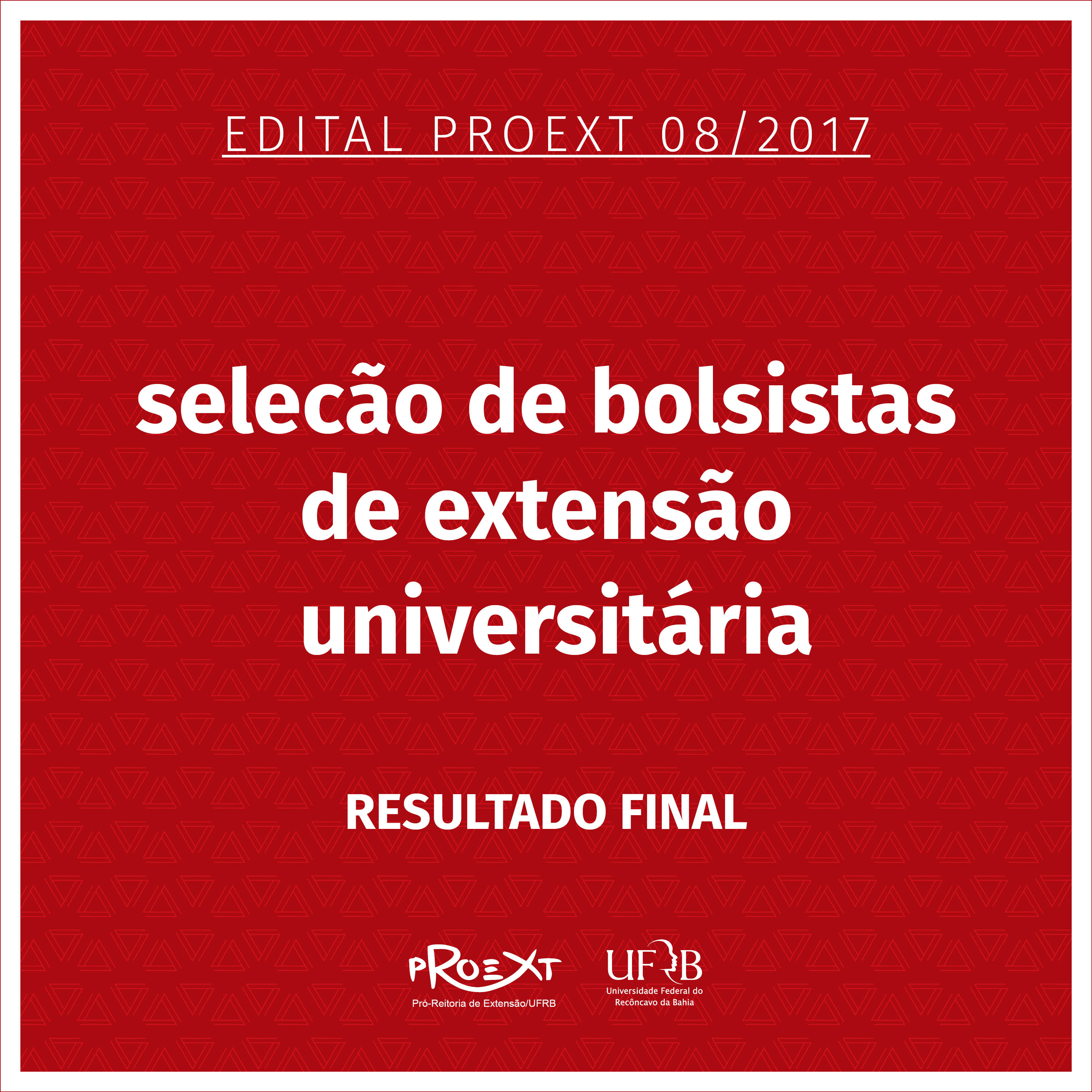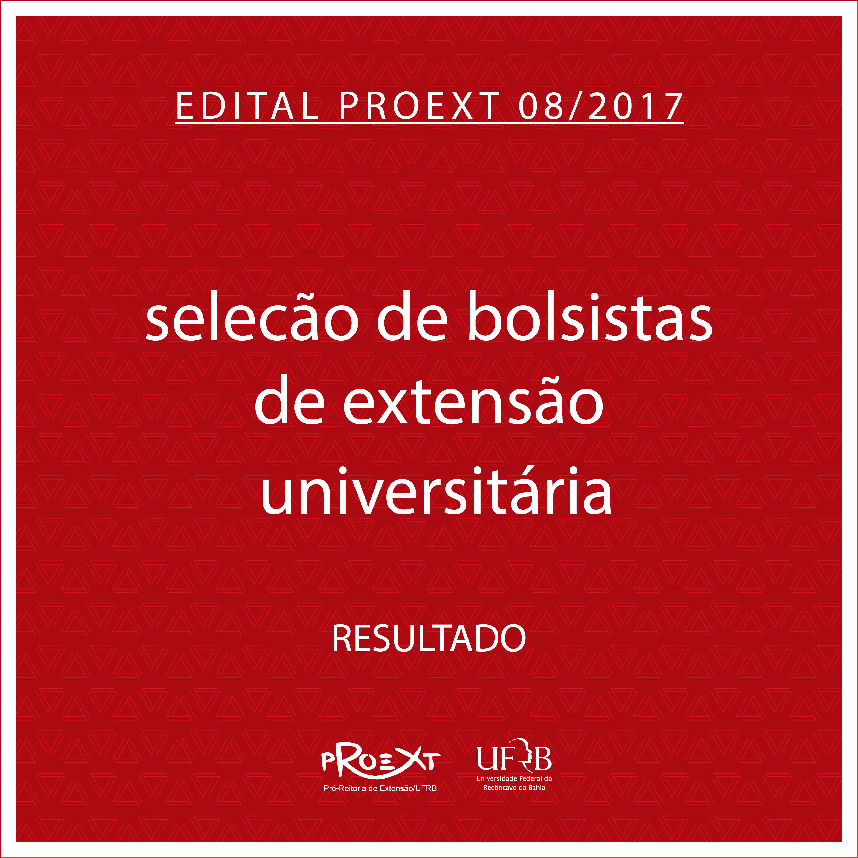 A Pró-Reitoria de Extensão da Universidade Federal do Recôncavo da Bahia torna público o resultado do Edital PROEXT 08/2017 – chamada para seleção de bolsistas de extensão...