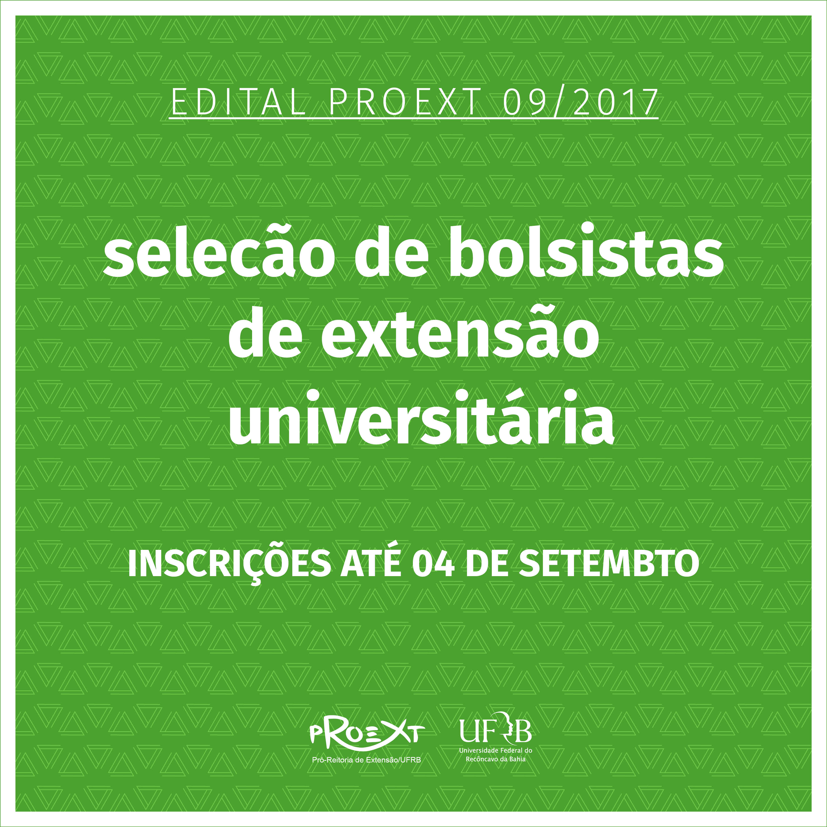PROEXT publica o Edital 09/2017 - chamada para seleção de bolsistas de extensão universitária