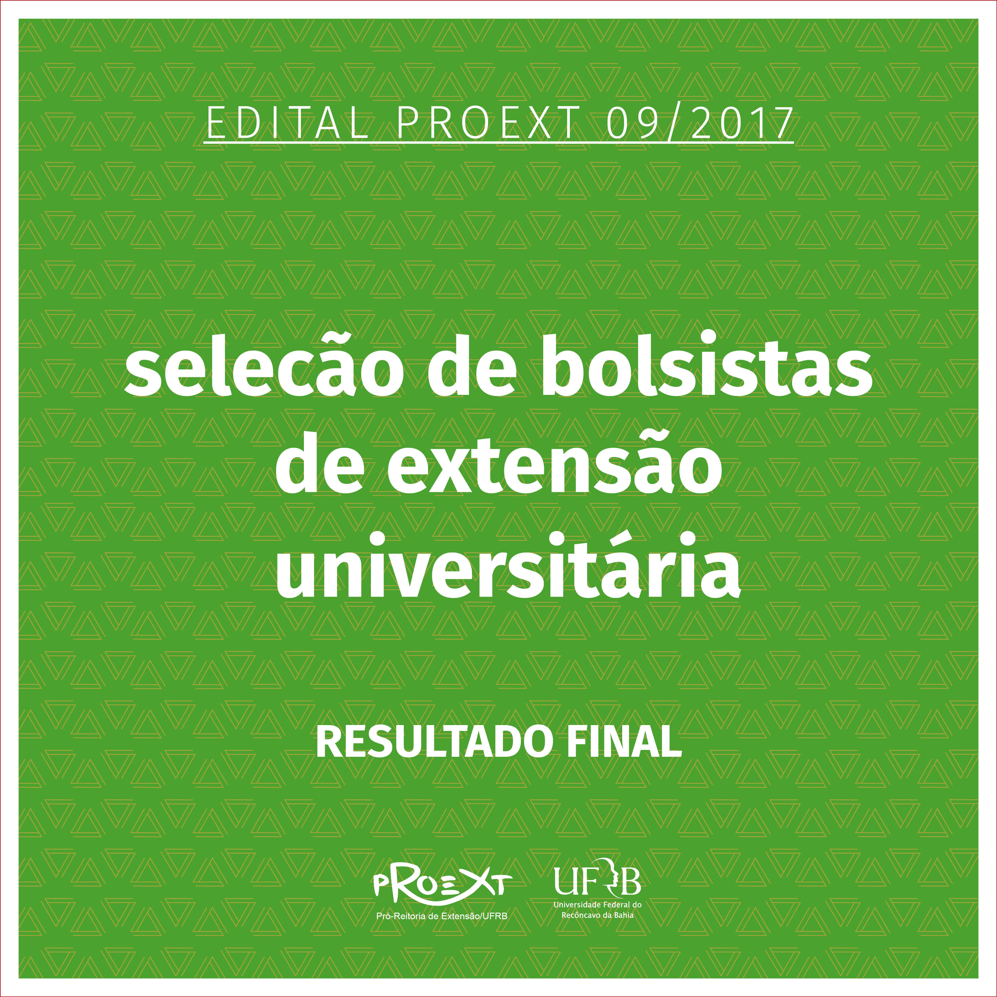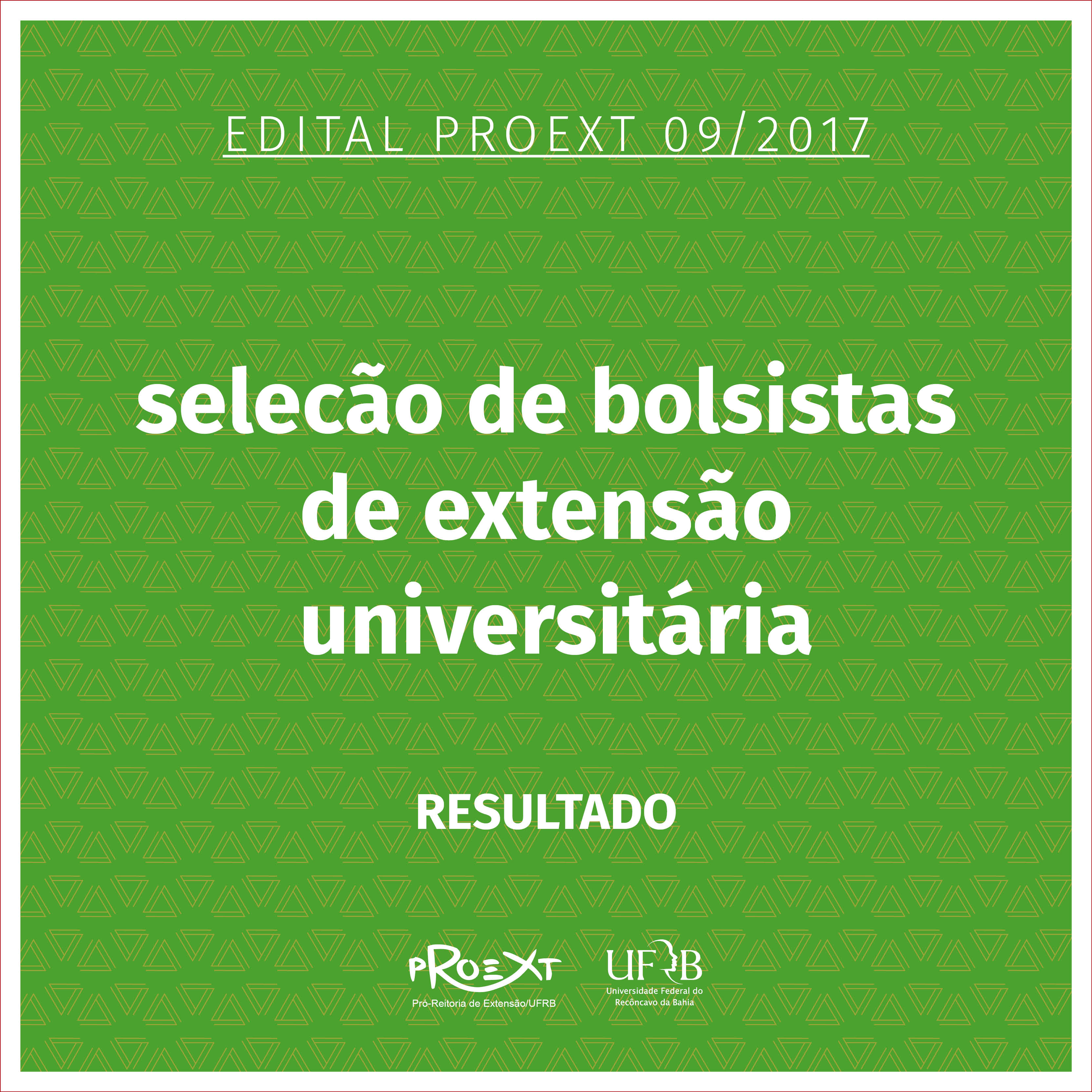 A Pró-Reitoria de Extensão da Universidade Federal do Recôncavo da Bahia torna público o resultado do Edital PROEXT 09/2017 – chamada para seleção de bolsistas de extensão...
