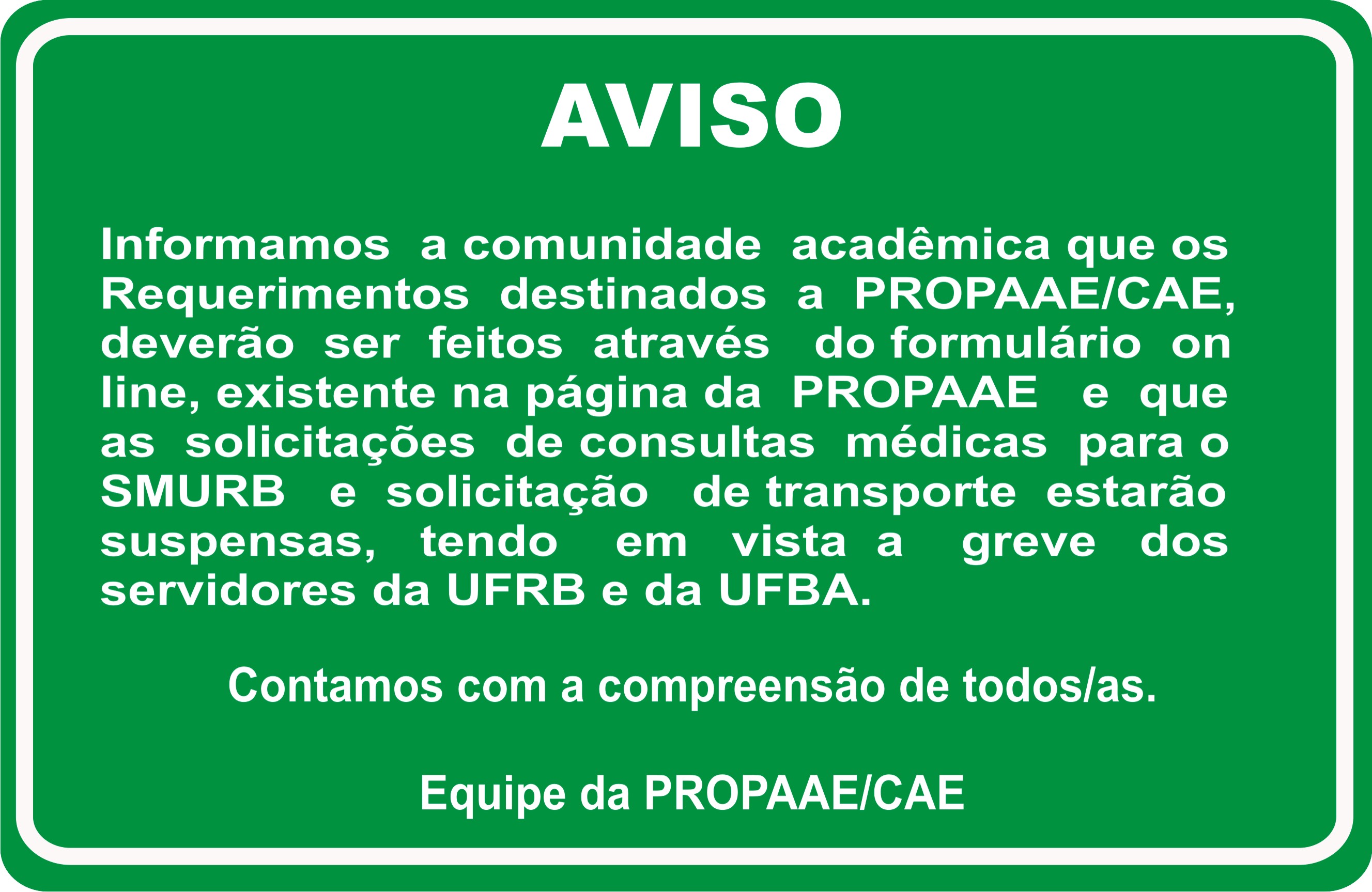 Aviso sobre as solicitações a PROPAAE