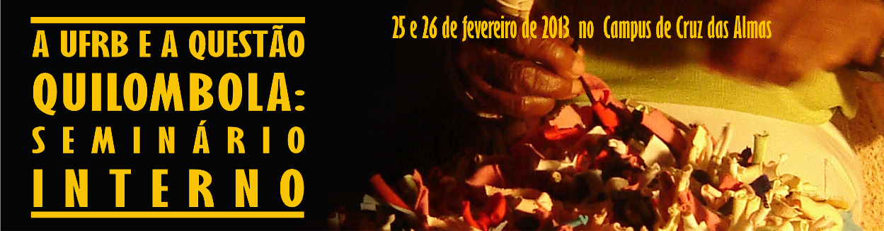 O Seminário Interno A UFRB e a Questão Quilombola visa propiciar um espaço reflexivo para apresentação, discussão e difusão de trabalhos de pesquisa, ensino e extensão realizados por estudantes, técnico-administrativos e docentes da UFRB relacionadas às comunidades quilombolas.