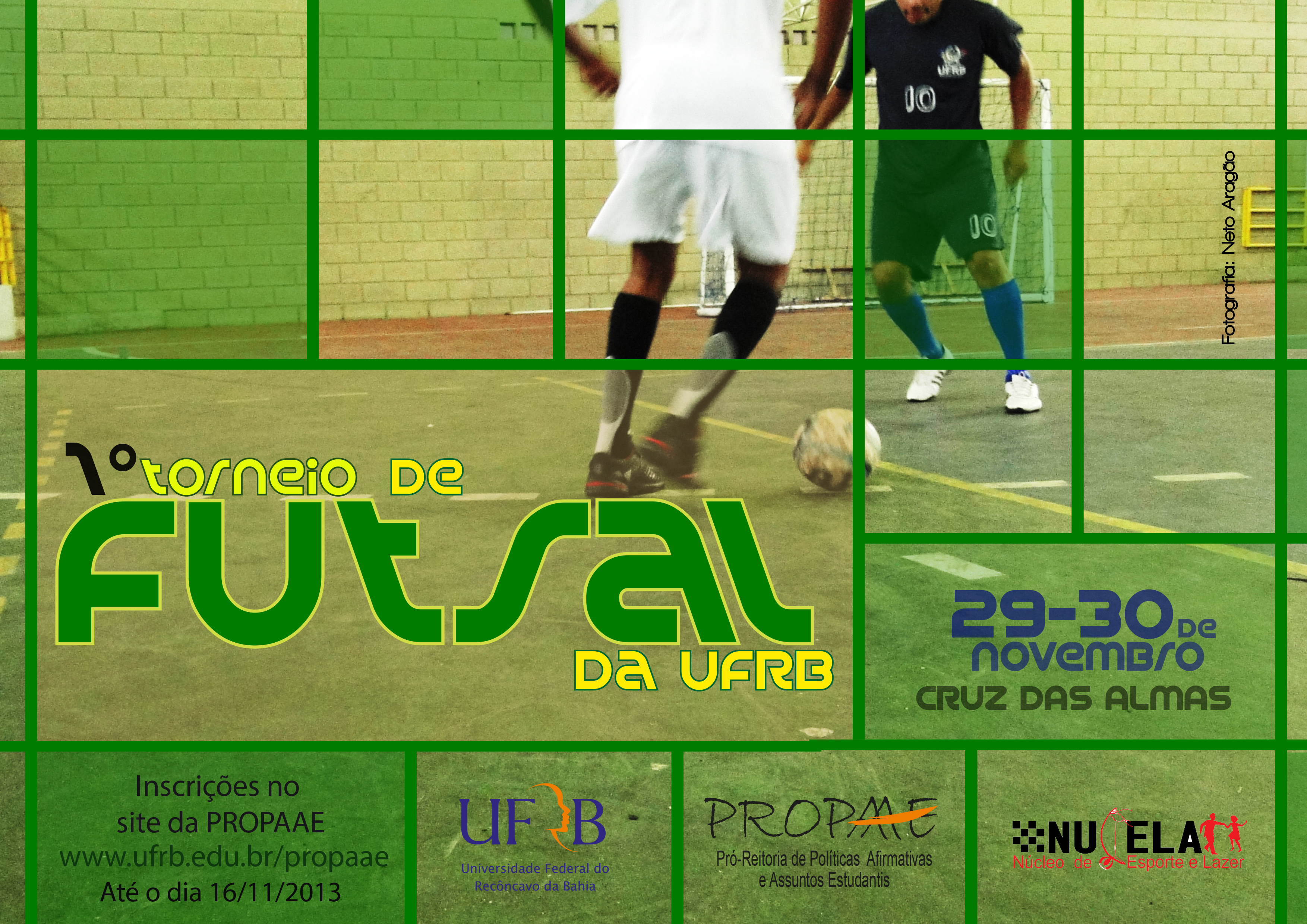 A PROPAAE - Pró-reitoria de Políticas Afirmativas e Assuntos Estudantis - lança inscrições para o 1º Torneio de Futsal da UFRB. O torneio oferece vagas limitadas e por categoria, serão 05 equipes equipes de servidores, 08 equipes de discentes, 02 equipes de terceirizados e 01 equipe convidada. Na modalidade Feminina serão disponibilizadas 04 vagas para equipes de qualquer categoria.