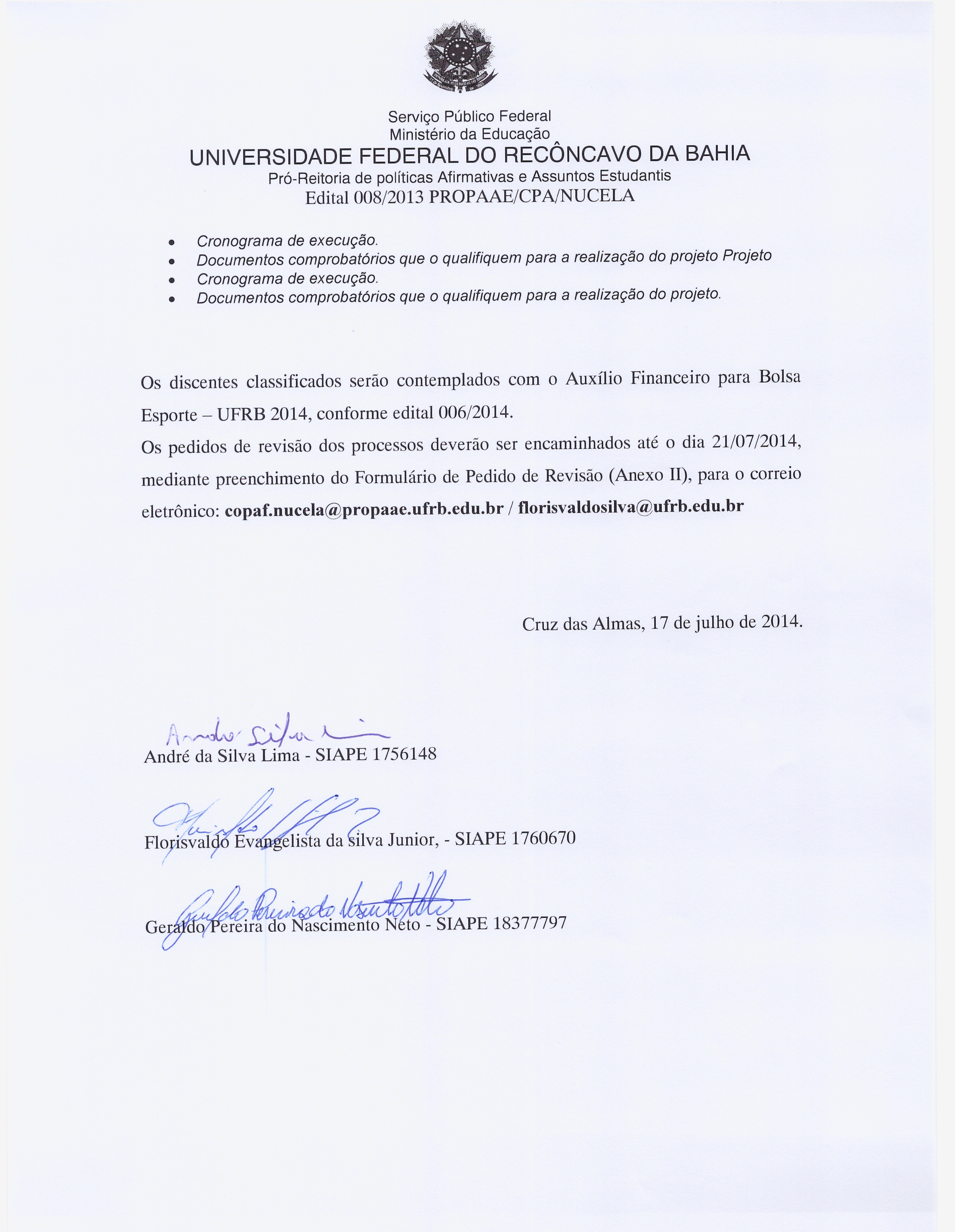 NUCELA divulga o deferimento das inscrições e resultado provisório da Bolsa Esporte